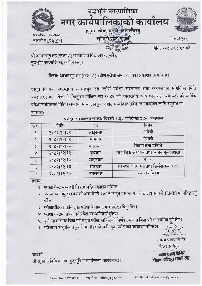 आधारभूत तह (कक्षा-८) सञ्चालित विद्यालयहरु(सबै), आधारभूत तह (कक्षा-८) उत्तीर्ण परीक्षा समय तालिका प्रकाशन सम्बन्धमा।