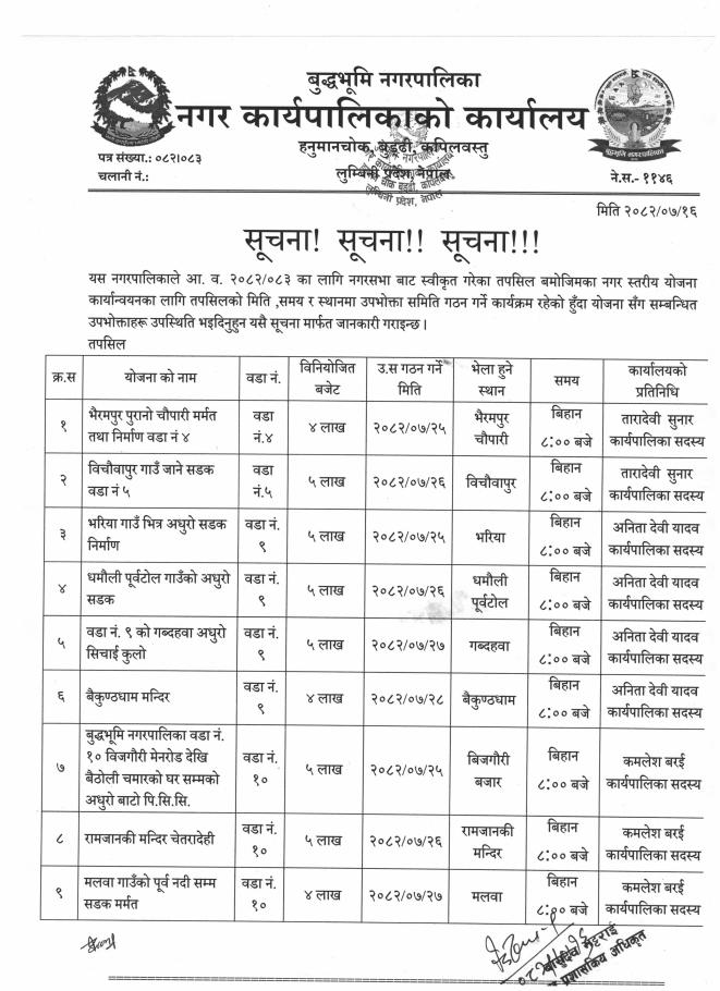 बुद्धभूमी नगरपालिका नागरिक वडापत्र