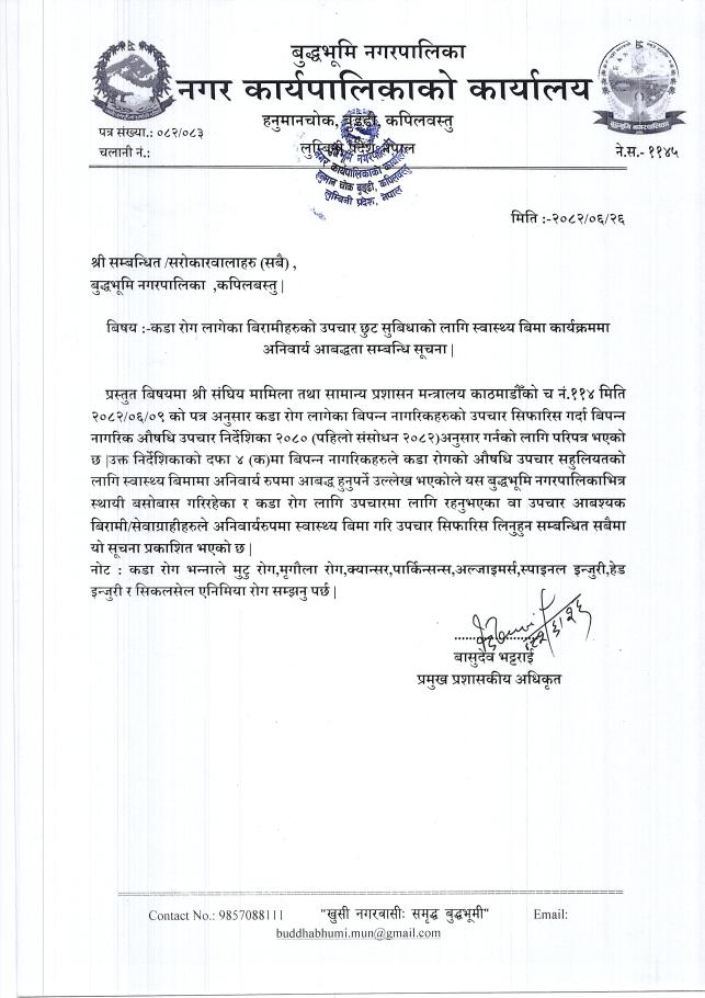 बुद्धभूमी नगरपालिका नागरिक वडापत्र