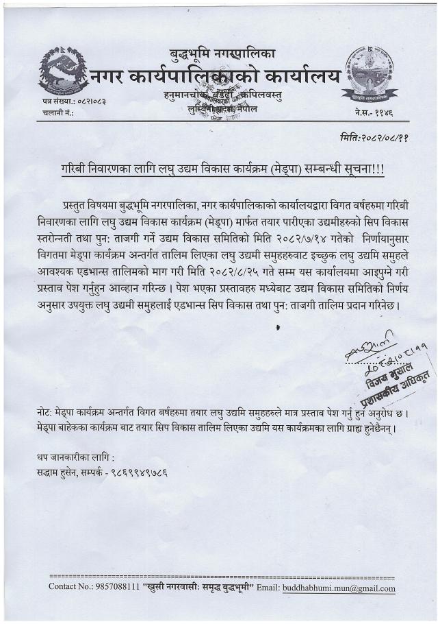 गरिबी निवारणका लागि लघु उद्यम विकास कार्यक्रम (मेड्पा) सम्बन्धी सूचना !!!