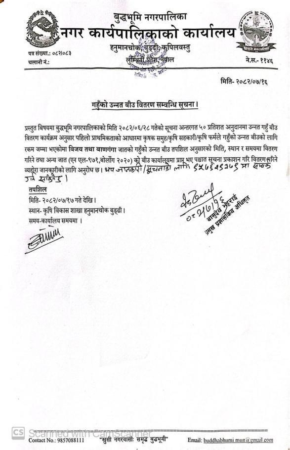 गहुँको उन्नत बीउ वितरण सम्बन्धी सूचना।