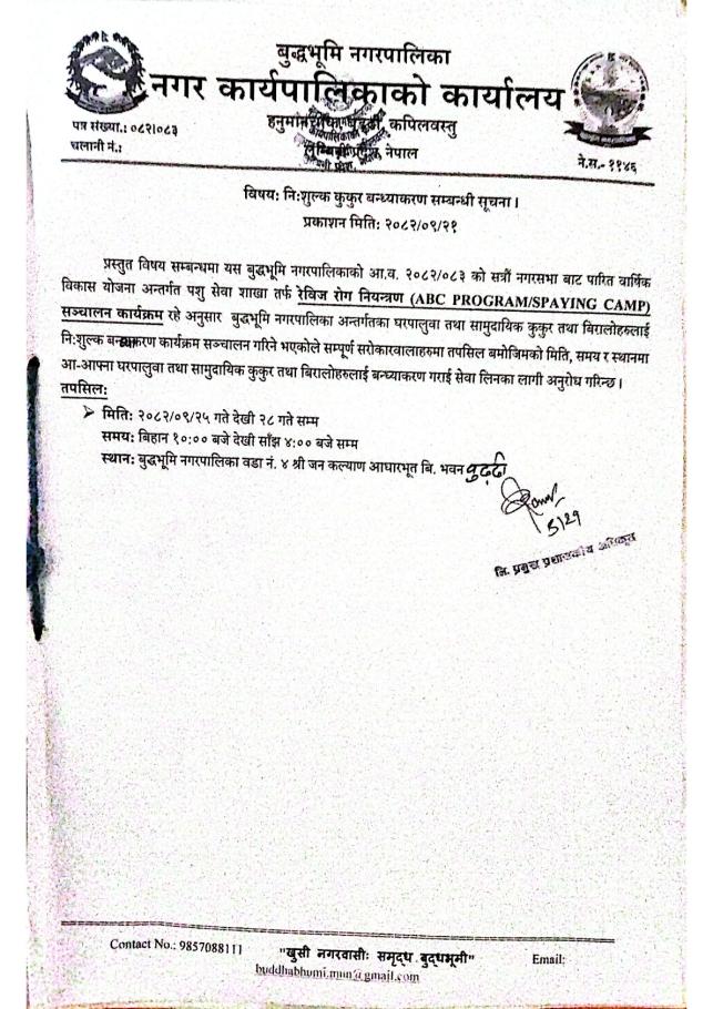 बुद्धभूमी नगरपालिका नागरिक वडापत्र