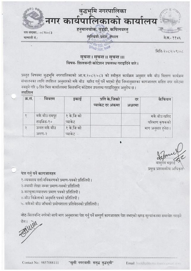 » मकै बीउको शिलवन्दी कोटेशन उपलव्ध गराइदिने बारे।