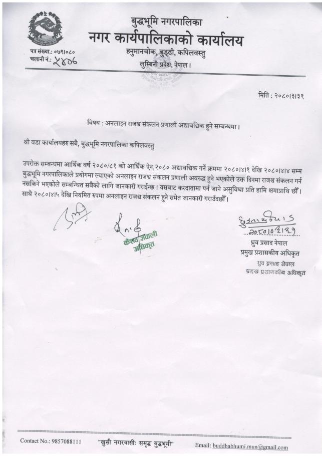 अनलाइन राजश्व संकलन प्रणाली अद्यावद्यिक हुने सम्बन्धमा ।