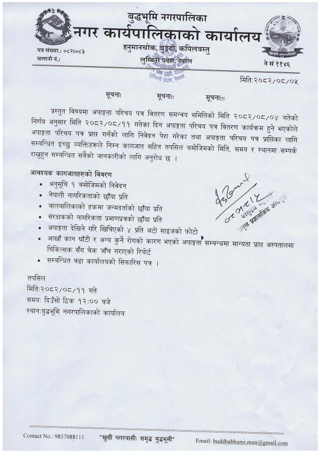 अपाङ्गता परिचय पत्र वितरण कार्यक्रम सम्बन्धी सूचना!