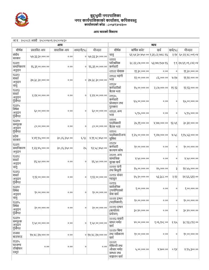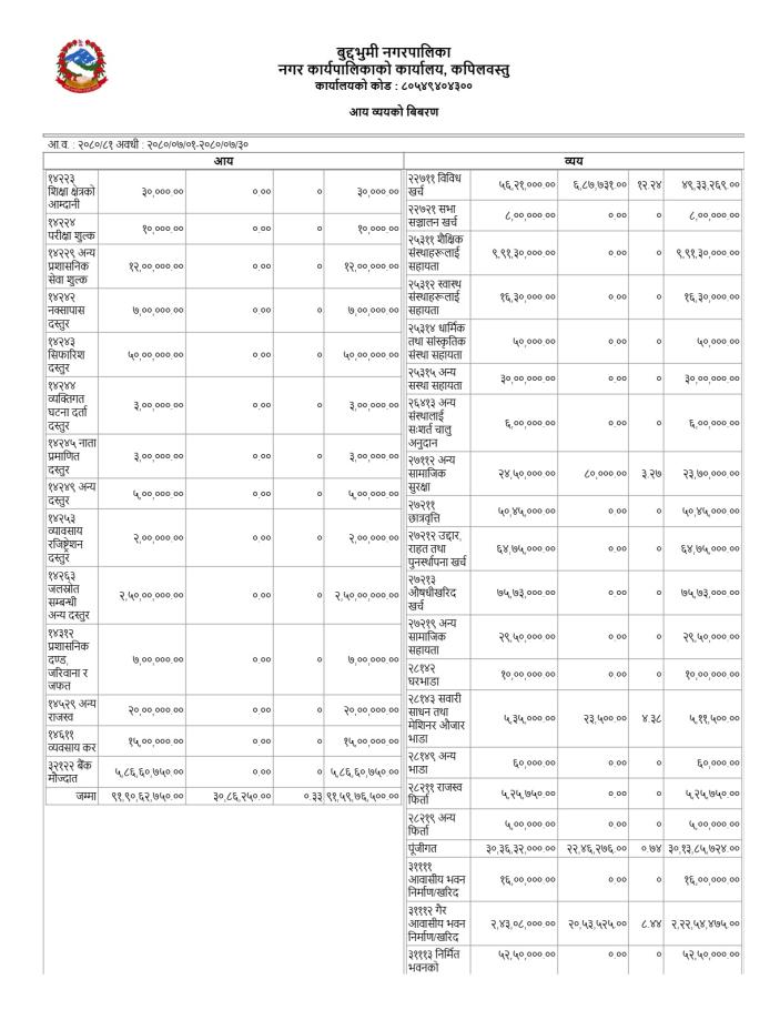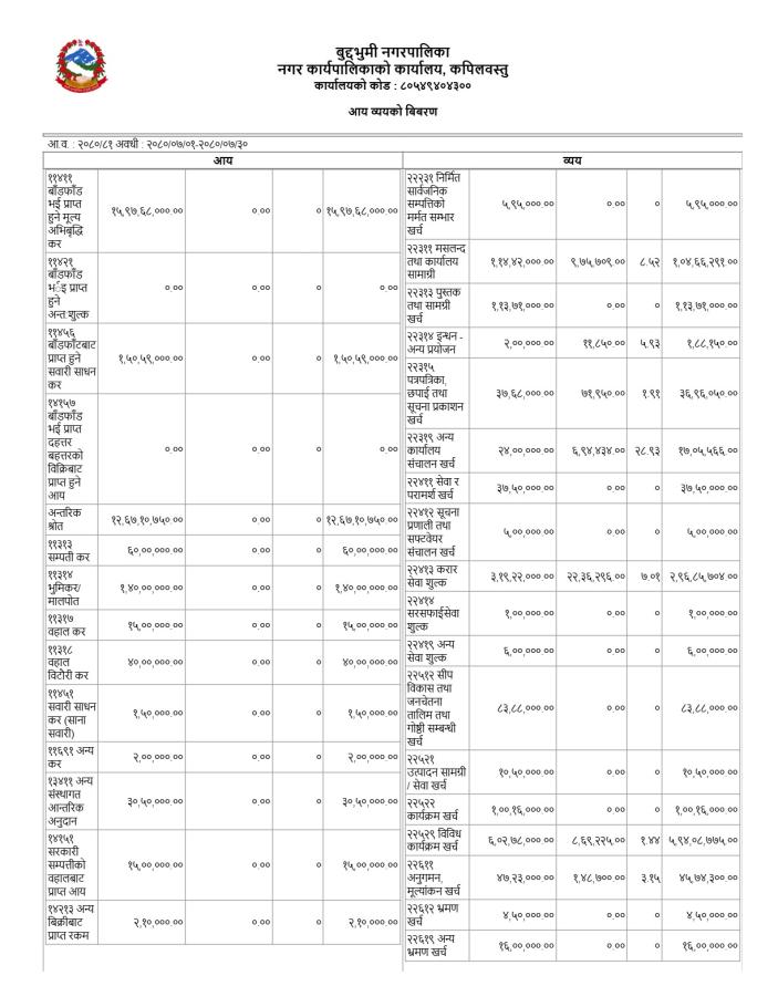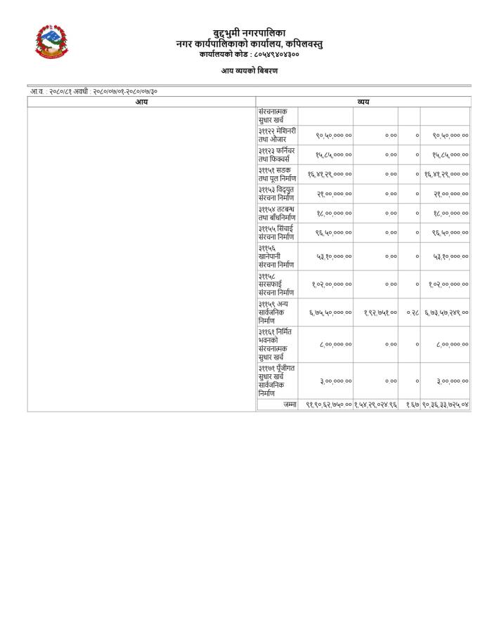 कार्त्तिक महिनाको आय/व्यव विवरण सम्बन्धमा ।