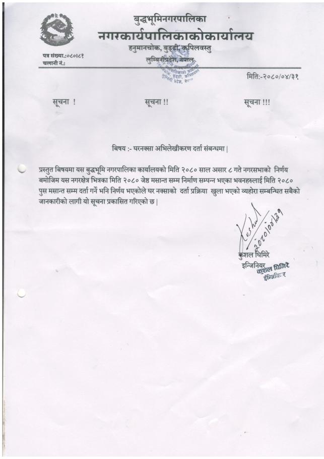 बुद्धभूमी नगरपालिका नागरिक वडापत्र