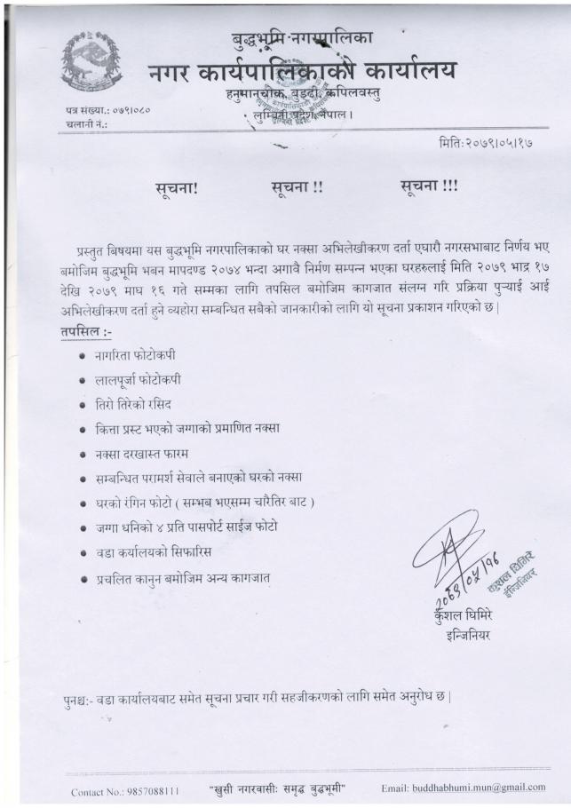 बुद्धभूमी नगरपालिका नागरिक वडापत्र