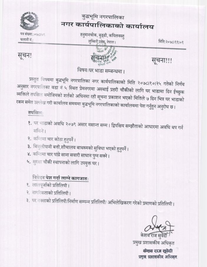 बुद्धभूमी नगरपालिका नागरिक वडापत्र