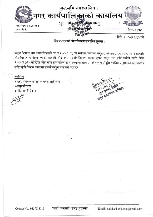» तरकारी बीउ वितरण सम्बन्धी सूचना !