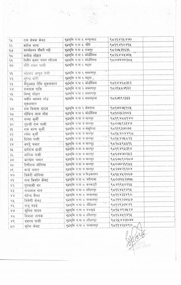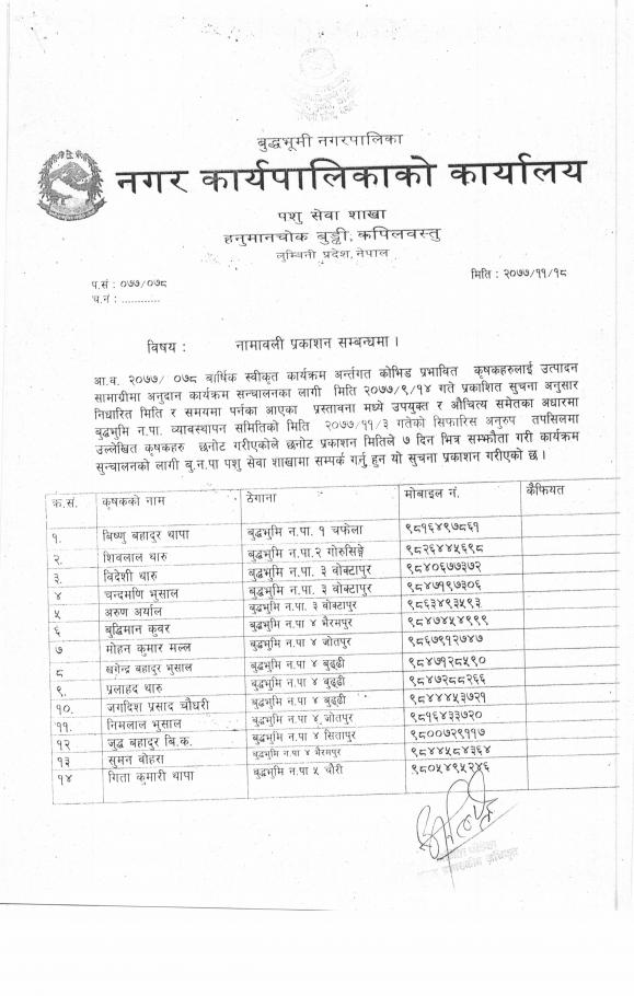 नामावली प्रकाशन सम्बन्धमा ।(पशु सेवा शाखा)