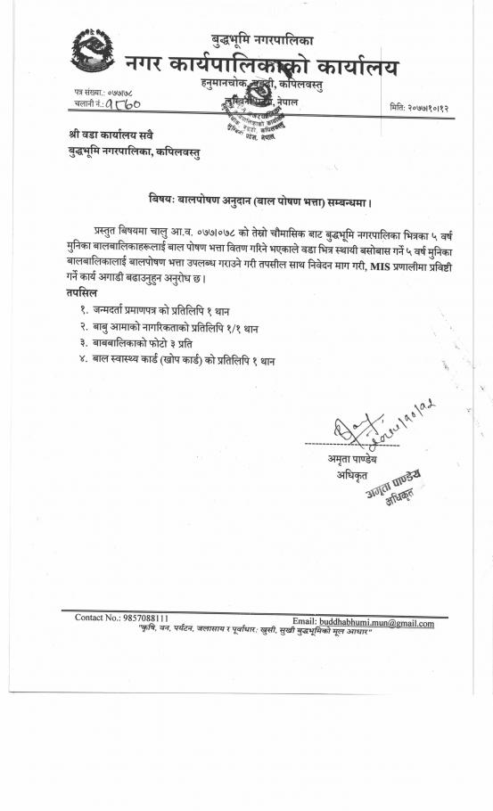 बुद्धभूमी नगरपालिका नागरिक वडापत्र