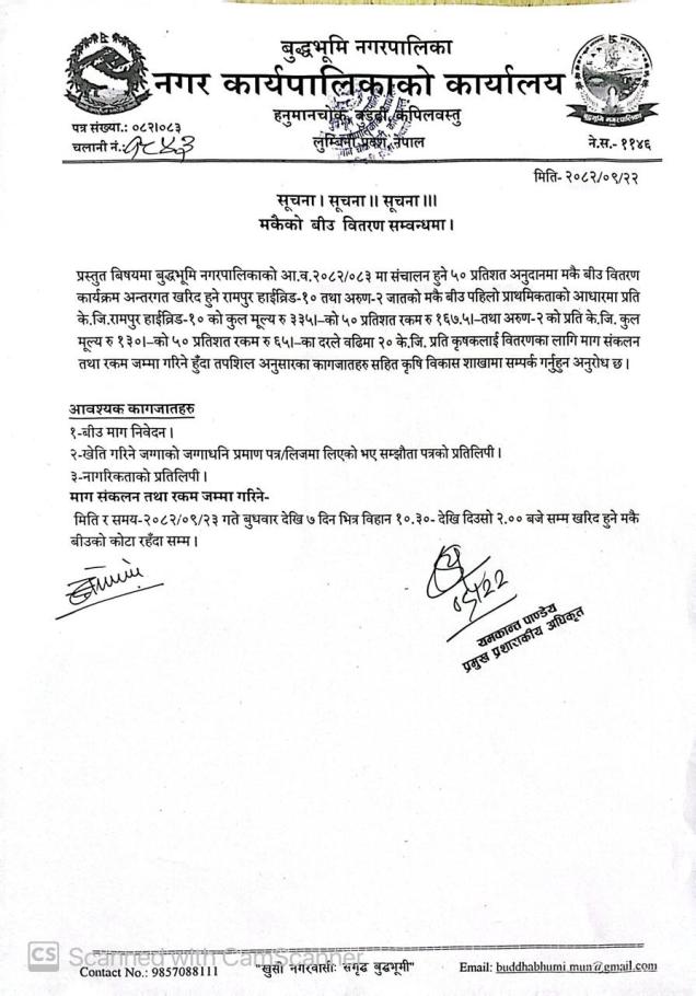 बुद्धभूमी नगरपालिका नागरिक वडापत्र