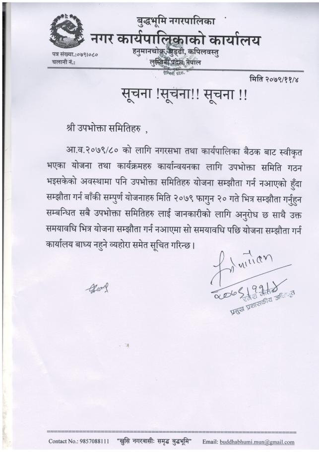 बुद्धभूमी नगरपालिका नागरिक वडापत्र