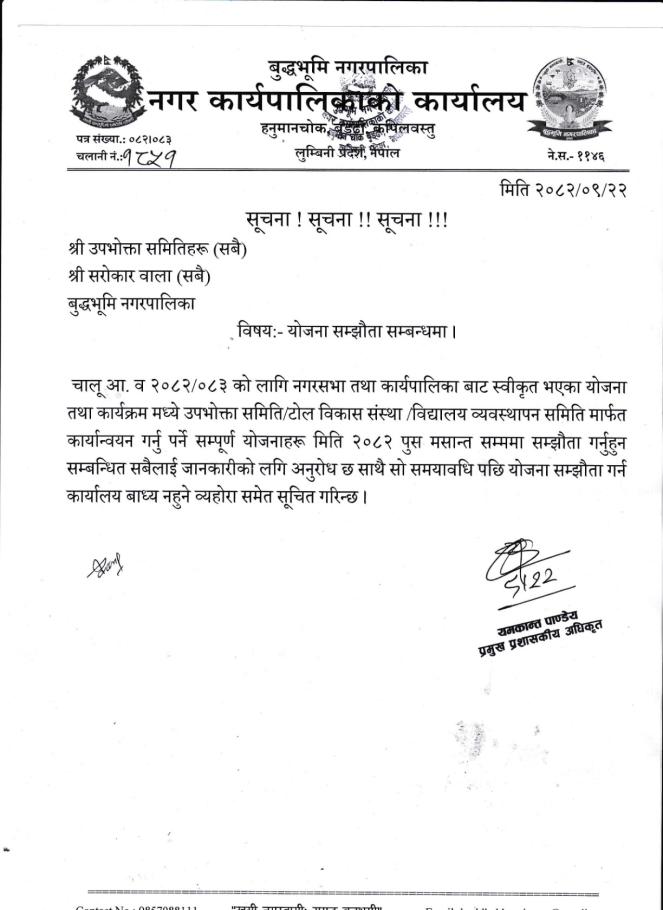 योजना सम्झौता सम्बन्धी सूचना !