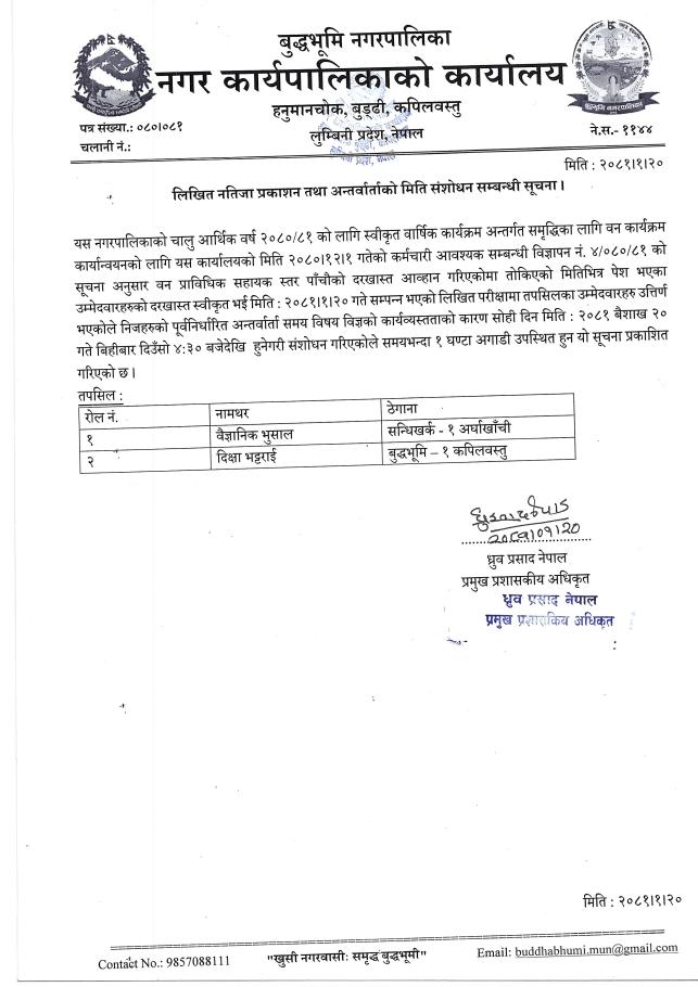 लिखित नतिजा प्रकाशन तथा अन्तर्वाताको मिति संशोधन सम्बन्धी सूचना !