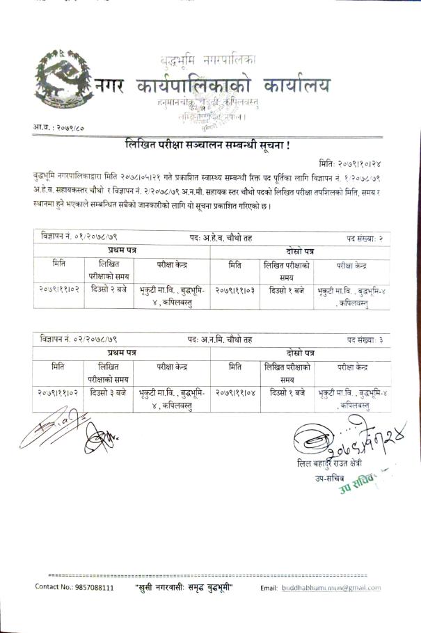 बुद्धभूमी नगरपालिका नागरिक वडापत्र