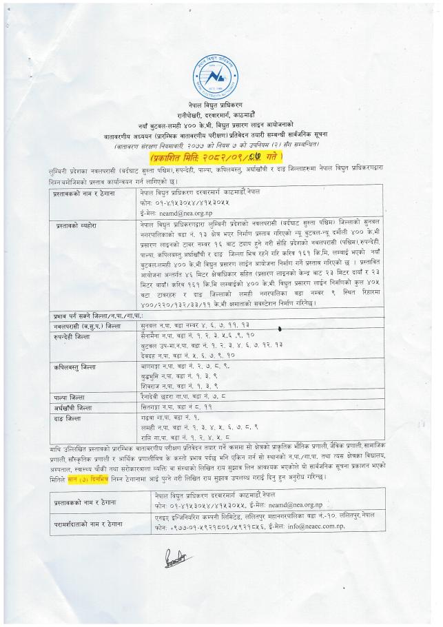 वातावरणीय अध्ययन (प्रारम्भिक वातावरणीय परीक्षण) प्रतिवेदन तयारी सम्बन्धी सार्वजनिक सूचना