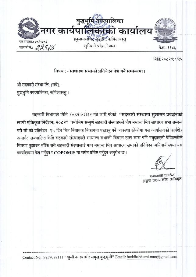 बुद्धभूमी नगरपालिका नागरिक वडापत्र