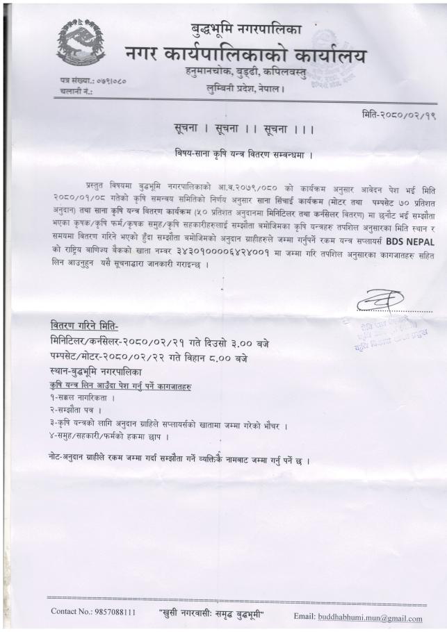 बुद्धभूमी नगरपालिका नागरिक वडापत्र