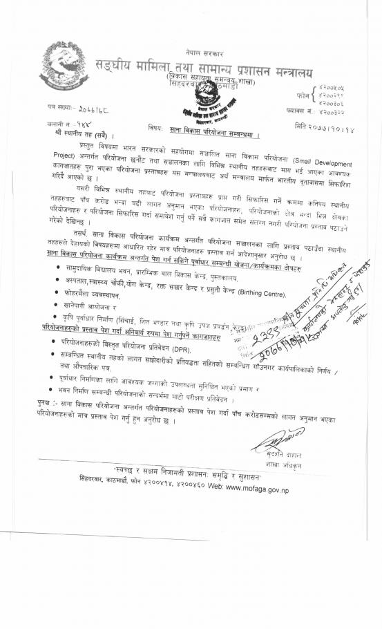 रासायनिक मल (युरिया तथा डि ए पी) को कोटा निर्धारण गरिएको बारे।