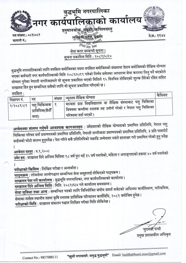 सेवा करारमा कर्मचारी आवश्यकता सम्बन्धी सूचना !
