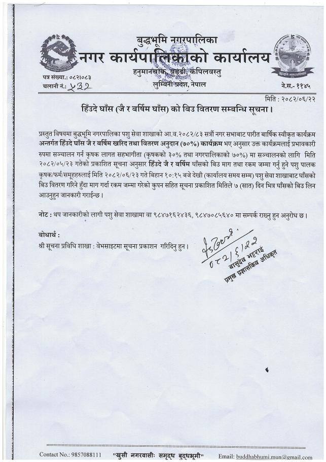 हिंउदे घाँस (जै र बर्षिम घाँस) को बिउ वितरण सम्बन्धि सूचना।