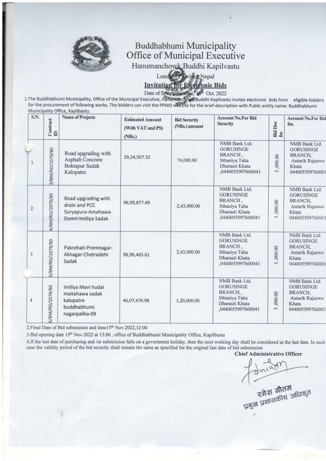 बुद्धभूमी नगरपालिका नागरिक वडापत्र