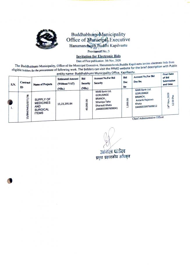 बुद्धभूमी नगरपालिका नागरिक वडापत्र